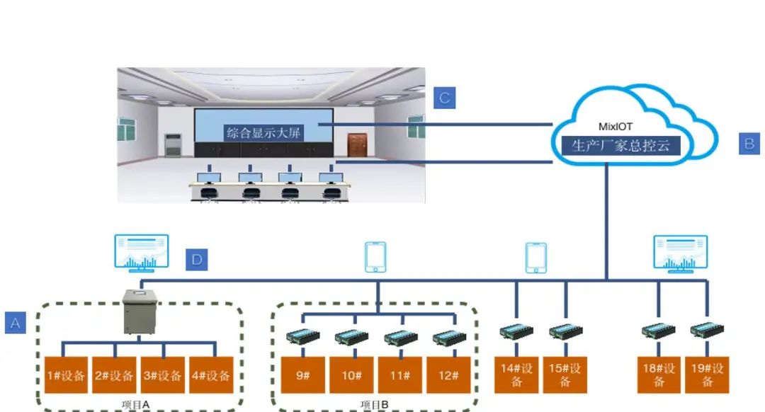 該解決方案由設(shè)備對(duì)接、總控云、綜合大屏/中控臺(tái)和客戶界面四個(gè)部分組成。